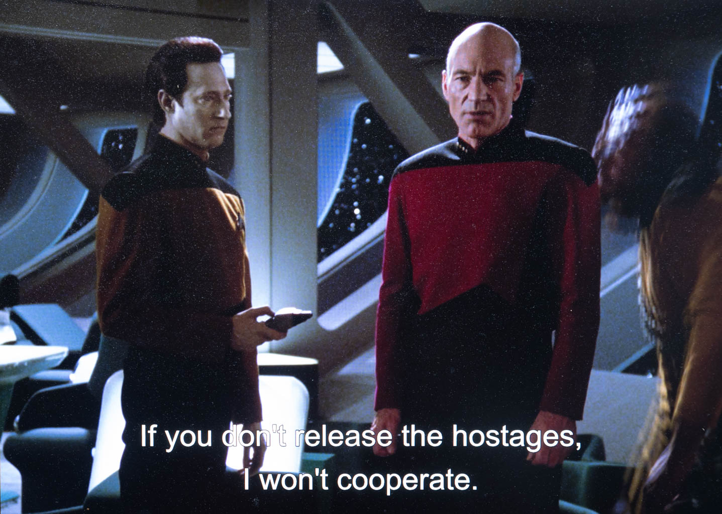 スタートレック・TNGの”Power Play”を観ました。久し振りにまあまあ楽しめたエピソードでした。エンタープライズ号はある惑星の月からの弱い救助信号を受信します。しかし非常に強い磁気嵐のため、生存者は確認出来ませんが、救助信号自体は200年前にこの地で消息を絶ったUSS Essexのものでした。磁気嵐で転送が難しいためライカー、データ、トロイの3人がシャトルで地表に向かいますが、嵐でクラッシュして不時着します。オブライエンが何とか転送して一行を救助するためのシールドを持って来ましたが、その時4人は雷光に打たれ、怪我していたライカー以外の3人は何かに乗り移られます。乗り移られた3人はエンタープライズ号の中で反乱を起こし、テンフォワードで人質を取って立て籠もります。3人が言うには、Essexの乗員の幽霊であり、200年前からこの星に囚われているのから解放して欲しいと訴えます。しかしよくよく問い詰めると、実はその月は囚人の監獄星であって、囚人がEssexの乗員の亡霊を騙っていたものでした。ピカードはカーゴベイを爆破すると脅し、結局囚人は元の月に戻って行きます。見物はデータがウォーフを嬲って殺そうとしたことや、オブライエンが自分の妻のケイコと二人の娘を脅かしていところです。