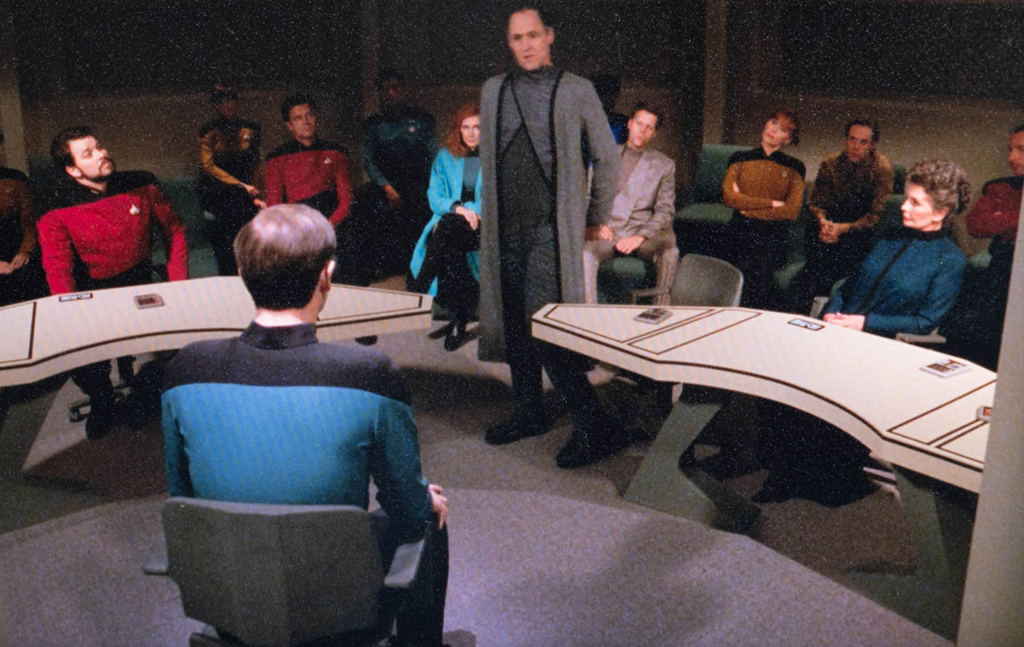 スタートレック・TNGの”The Drumhead”を観ました。全てエンタープライズ号の船内だけで進行し、また無実の者を罪人に仕立てようとするという嫌な内容でしたが、しかし最高にジーン・ロッデンベリーらしいお話でした。エンタープライズ号にやって来ていたクリンゴンの科学者が、エンタープライズ号のエンジンの秘密を盗んでロミュランに渡していたことが発覚します。それと同時期にエンタープライズ号のエンジンのハッチが爆発し、破壊工作が疑われました。その調査のためサティという検察官がやって来て、皆を尋問していきますが、その中で医療チームのターセスがサティのベータゾイドの副官によって何か嘘を付いているということで追及されます。結局ターセスの祖父はロミュランだったのをスターフリートに入るときにヴァルカンだと虚偽の申告をしていたことが発覚します。サティはこれでもう犯人は分かったとばかりにターセスの告発を続けますが、ピカードはそれにストップをかけようとします。サティはそれに対し上級の審議官を呼んで、今度はピカード自体も過去のPrime Directive違反で追及し始めます。しかしピカードがサティの父の法律家の言葉を引用し、このような小さな告発がやがて我々全員が鎖でつながれることになる、という言葉を引用し、サティがそれを聞いて逆上します。上級の審議官はサティのファナティックな告発のおかしさを理解し、全ての審議をストップさせます。ピカードはウォーフに魔女狩りの時代から人類はまだあまり進歩していないと言います。
