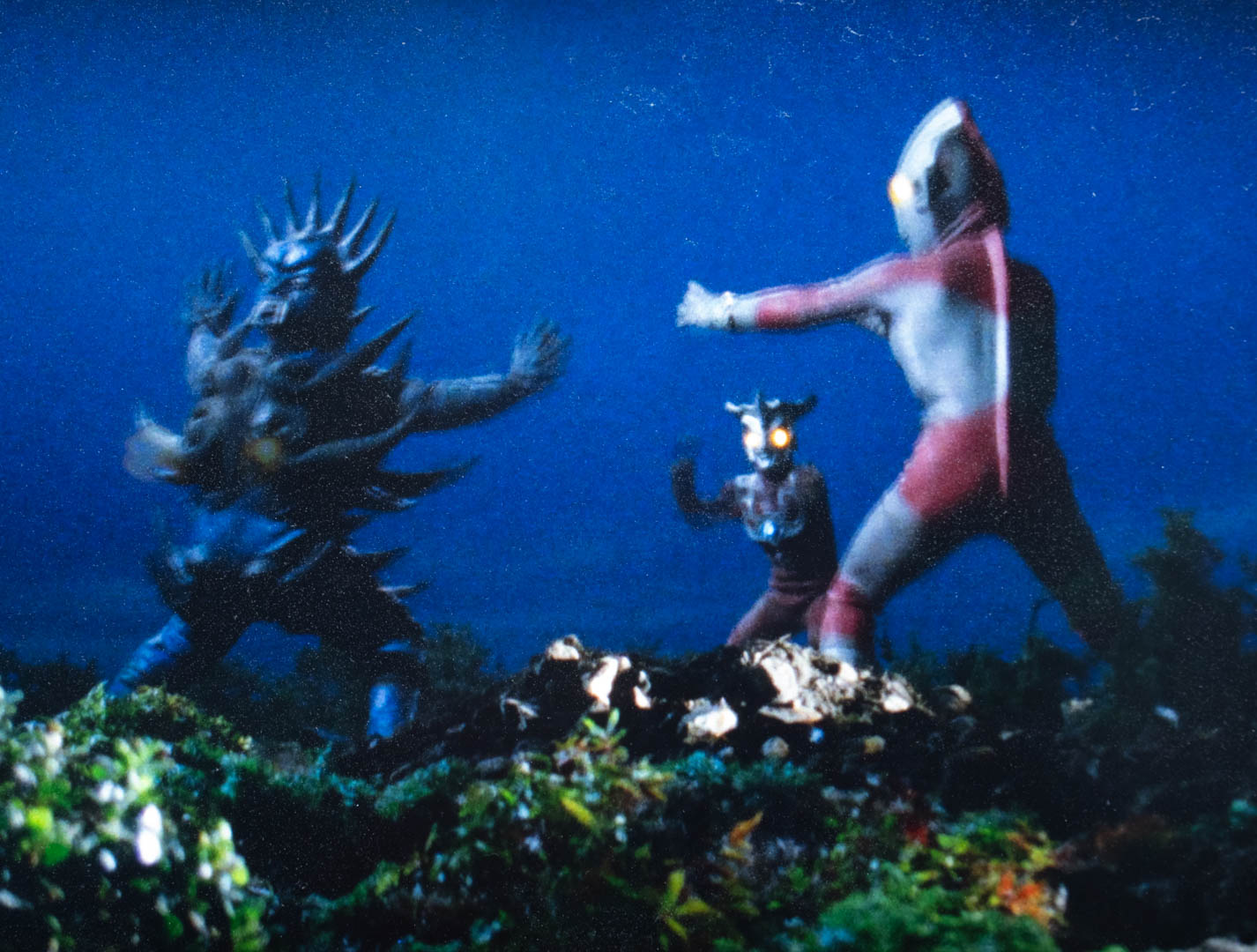 ウルトラマンレオの「ウルトラ兄弟永遠の誓い」を観ました。今回も視聴率対策のサービス回で、帰って来たウルトラマン、郷秀樹と新マンが変身出来なくなったダンに持って来た新しい「カプセル怪獣」じゃなくてカプセルロボットのセブンガーまで登場。そのセブンガーが見た目はカエルでまったく強そうじゃないのに、キングジョー並みの強さを発揮して一時はアシュランを倒しかけますが、一分間しか活動出来ず、しかも一回使うと50時間経たないとまた使えないという制限付き。仕方なく郷秀樹が怪我を押して新マンになり、月蝕の暗闇を利用としてレオと二人でなんとかアシュランを倒します。