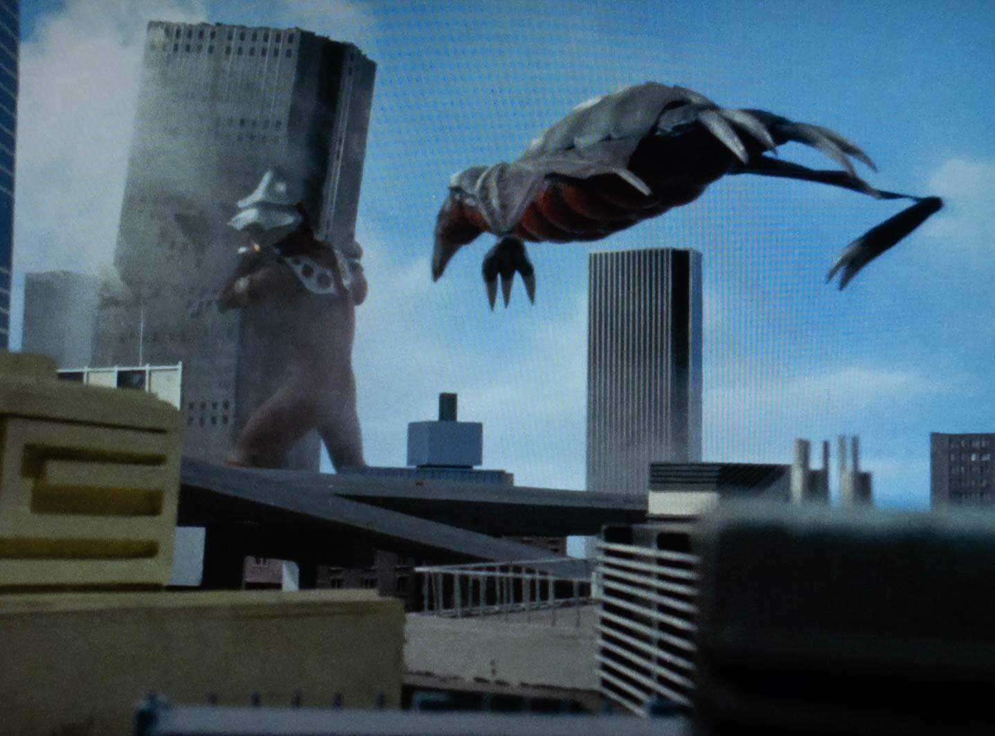 ウルトラマンレオの「大怪鳥円盤日本列島を襲う!」を観ました。多分当時まだ建設されたばかりの新宿住友ビルが怪鳥型円盤生物に襲われて倒壊しかけるのをレオが必死に支えます。中にはゲンのスポーツセンターの昔の同僚の女性がいました。その赤ちゃんをゲンは親友だったけど喧嘩別れした弘に託しますが、弘はゲンがレオであることを知ります。(その瞬間死亡フラグが立って怪鳥ジュニアに刺しまくられて死亡。(笑))人々が避難し終えた後ビルを離し、ようやくレオは怪鳥を倒します。それで笑えるのがその後にブラック指令がまた円盤生物を呼び寄せるシーンのバックが今倒壊したばかりの「新宿住友ビル」。フィルム使い回しの欠陥が出ています。