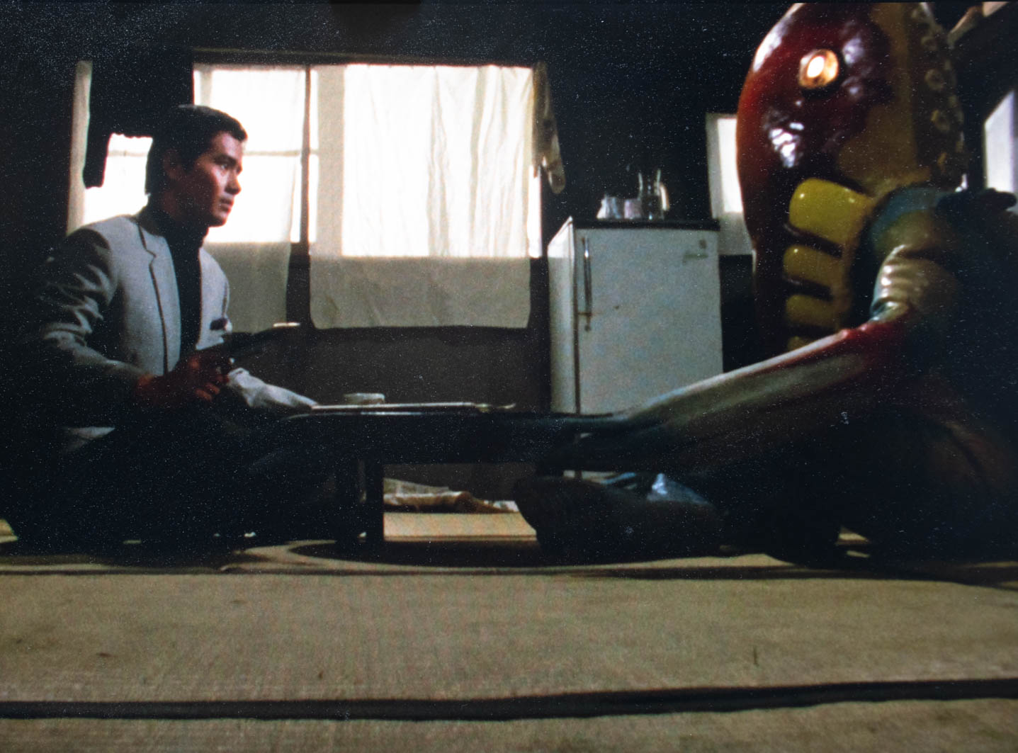 ウルトラセブンの「狙われた街」を観ました。この回は写真は迷わずこれです。安アパートの四畳半のちゃぶ台で向かい合うダンとメトロン星人です。まあこれが放送されていた頃は、こんな狭くて汚くて廊下は裸電球のアパートが多数あったんですが。監督は実相寺昭雄で、夕景の中のセブンとメトロン星人の戦いが非常に美しく撮られています。しかしこの頃は成人の喫煙率が50%を超えていたんですね、これも時代を感じます。