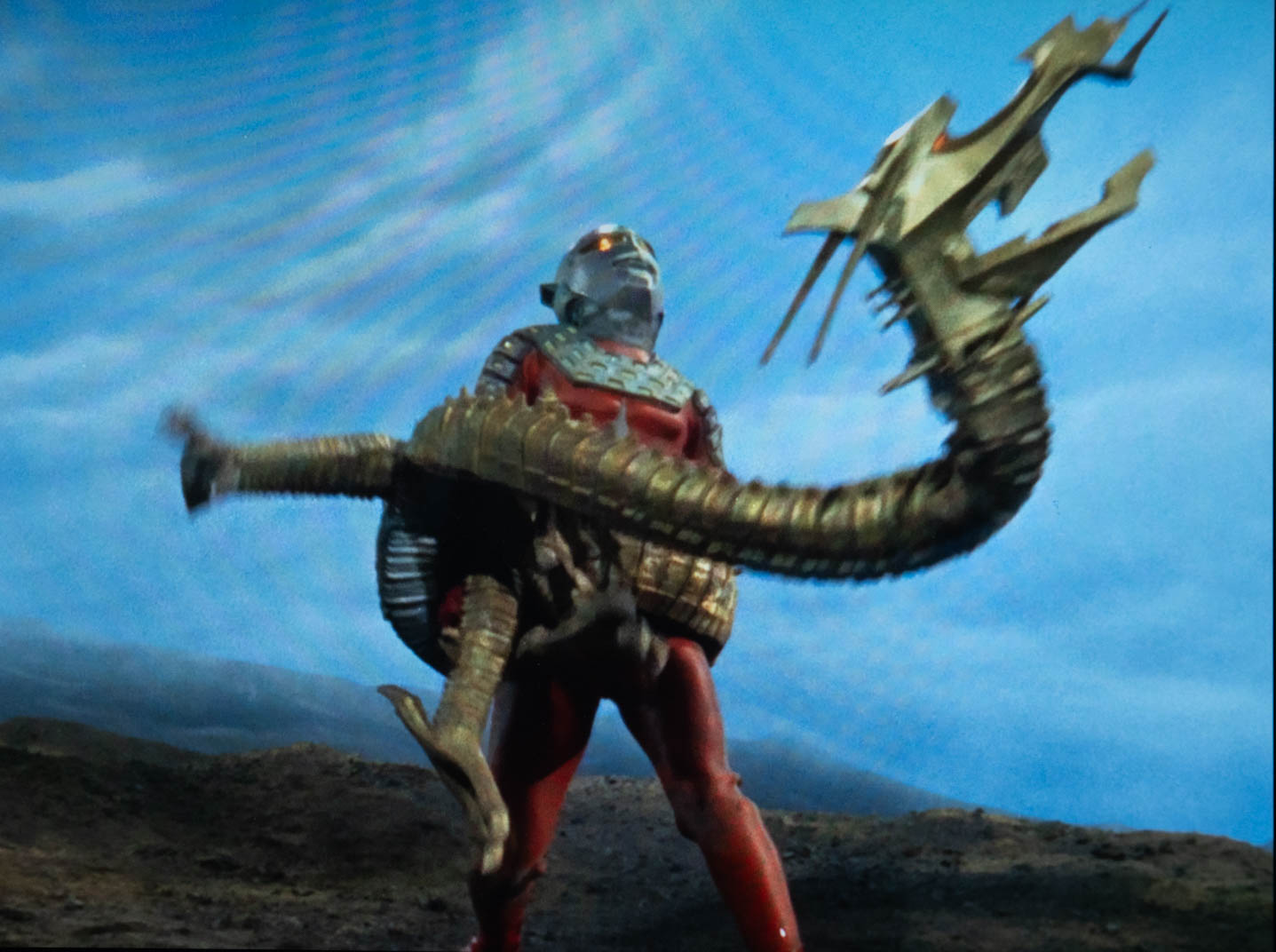ウルトラセブンの「魔の山へ飛べ」を観ました。ダンはワイルド星人の魂を吸い取るカメラにあっさり引っ掛かって死んでしまいます。ウルトラ警備隊のソガが現地の洞窟を調べ、そこにそのカメラを持ったワイルド星人を発見します。しかしソガは倒され、その命と引き換えにウルトラ警備隊が持っていったフィルムを返すように要求してきますが、キリヤマ隊長が空のフィルムケースを渡してだまして、ソガは救出され、一方アマギがフィルムに捉えられた命を再生する方法を発見し、ダンが蘇ります。それで途中を省略でセブンに変身したダンが現地に向かい、ワイルド星人の龍型ロボットナースと戦います。こういう長い敵って大体巻き付いて来て攻撃し、最後は中からバラバラに千切られるって定番ですが、その通りのパターンでナースは倒されます。しかし珍しくワイルド星人の造形は人の顔がそのまま出ていてチャチでした。