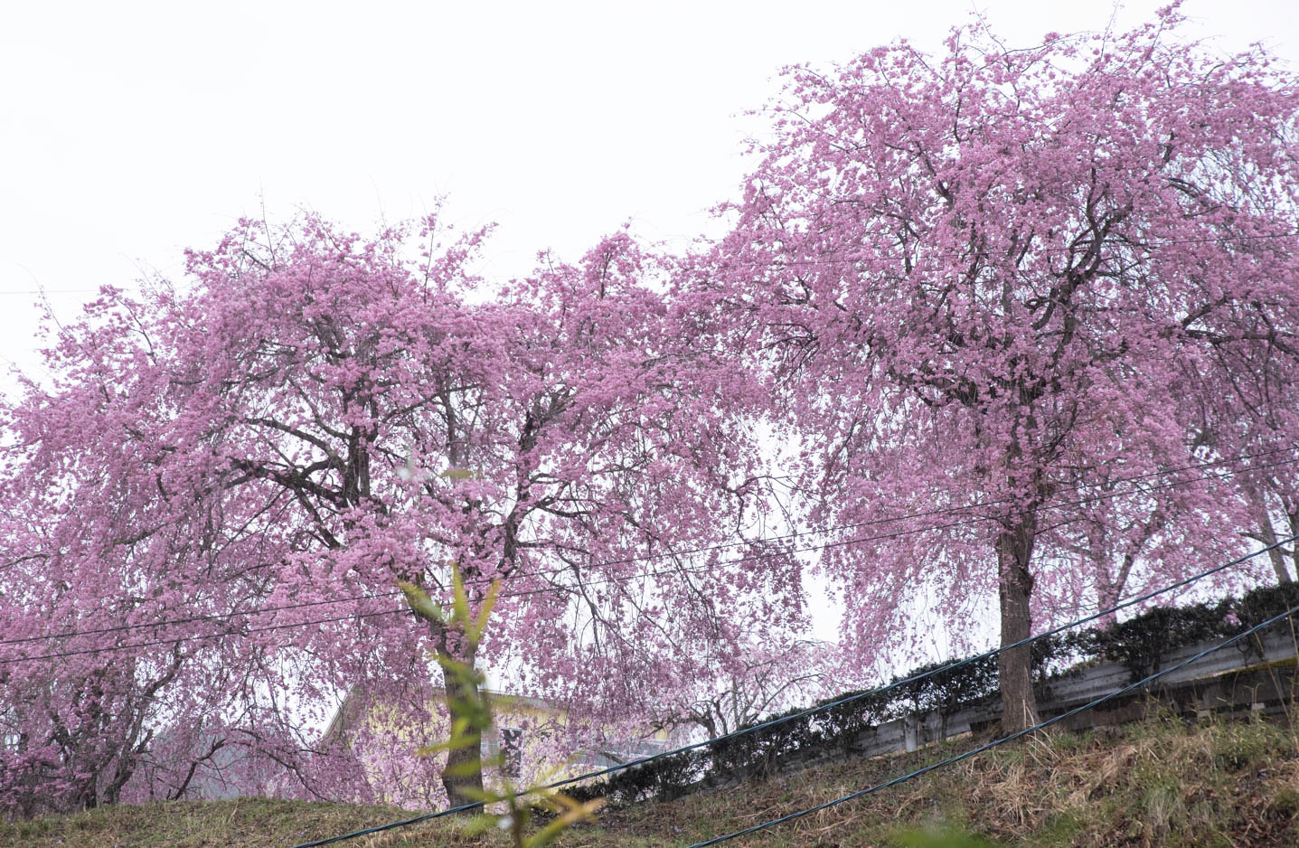 4月4日の土曜日に、昨年行った大野貯水池の桜の撮影に行こうかと思っていましたが、雨なので手抜きして、自宅のLDKから見える(笑)隣の藤野霊園のベニヤエシダレです。